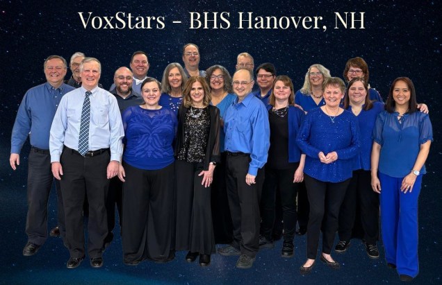The VoxStars are an all-voices a cappella chorus of the Hanover, NH chapter of the Northeastern District of the International Barbershop Harmony Society. We encourage vocal harmony and good fellowship among our members so that many others, including future generations, can enjoy this hobby.